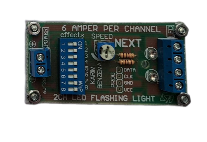 این فلاشر ال ای دی 2 کانال بوده با انتخاب دلخواه افکتها و تنظیم سرعت افکت بوسیله پتانسیمتر،