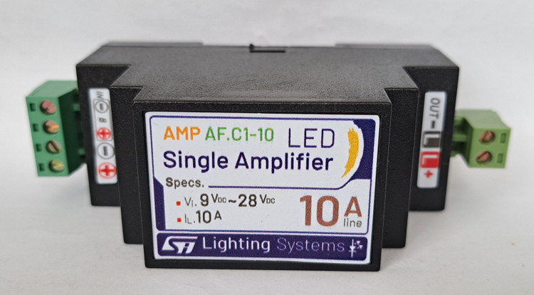 این آمپلی فایر جهت افزایش جریان خروجی فلاشرها و کنترلهای نور پردازی، برای هر لاین از چراغ ها درحالت فلاشری و افکت ها تا 10 آمپر و برای تقویت دیمر و حالت های غیر فلاشری حداکثر 8 آمپر است.